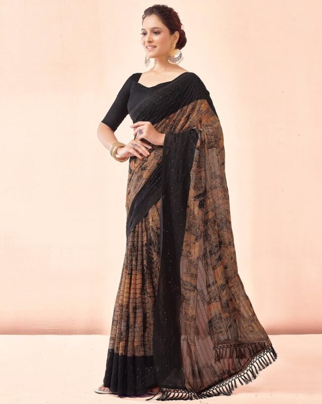 ₹1,500.00 Incl GST.Women Bandhani Print Chiffon Saree