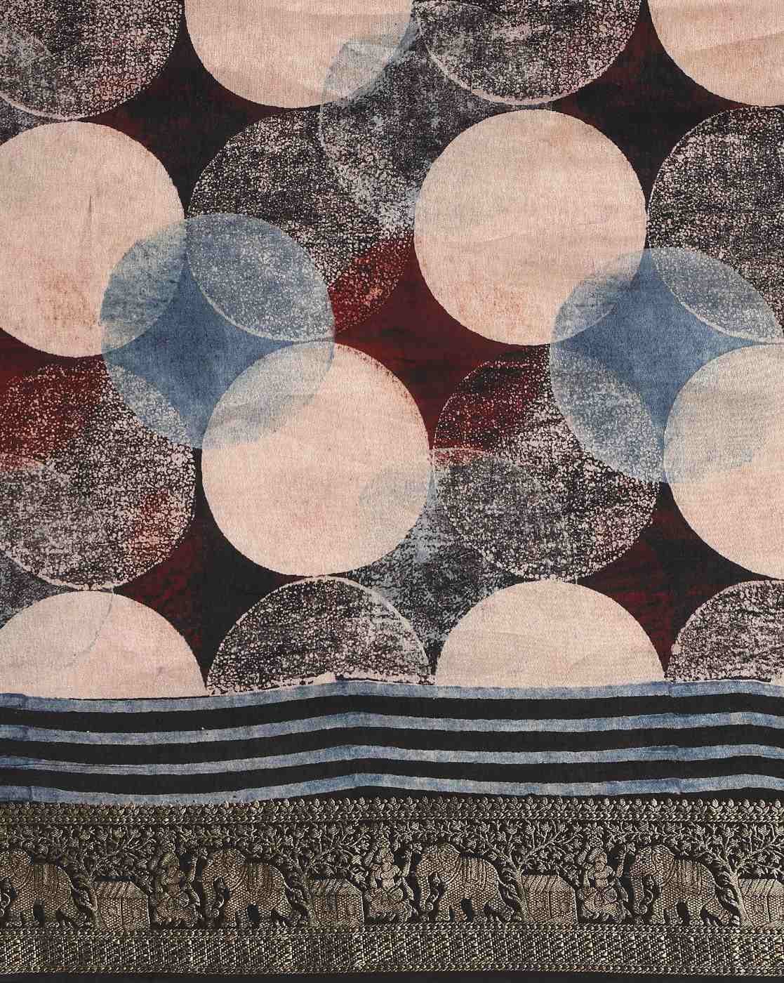 Handblock Bagru Print Handwoven Saree with Contrast Border